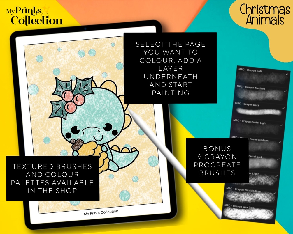 The Christmas Animals Coloring Pages for Kids and Toddlers has 50 Coloring Pages and Sheets PDF that you can print or color digitally using Procreate. Perfect for birthday gifts, wedding or travels.