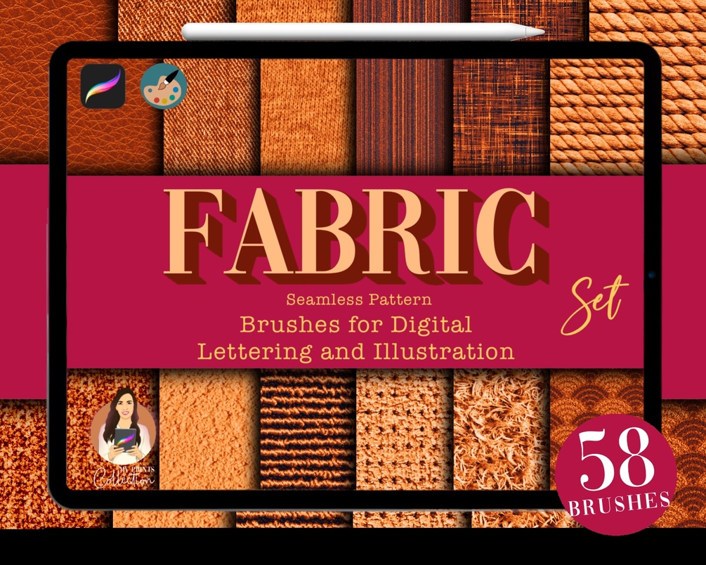 Fabric Procreate Brushes Pack | 58 Brushes | textile | leather | jeans | rope | linen | cotton knit| wool | fur | rug | carpet | Tutorial