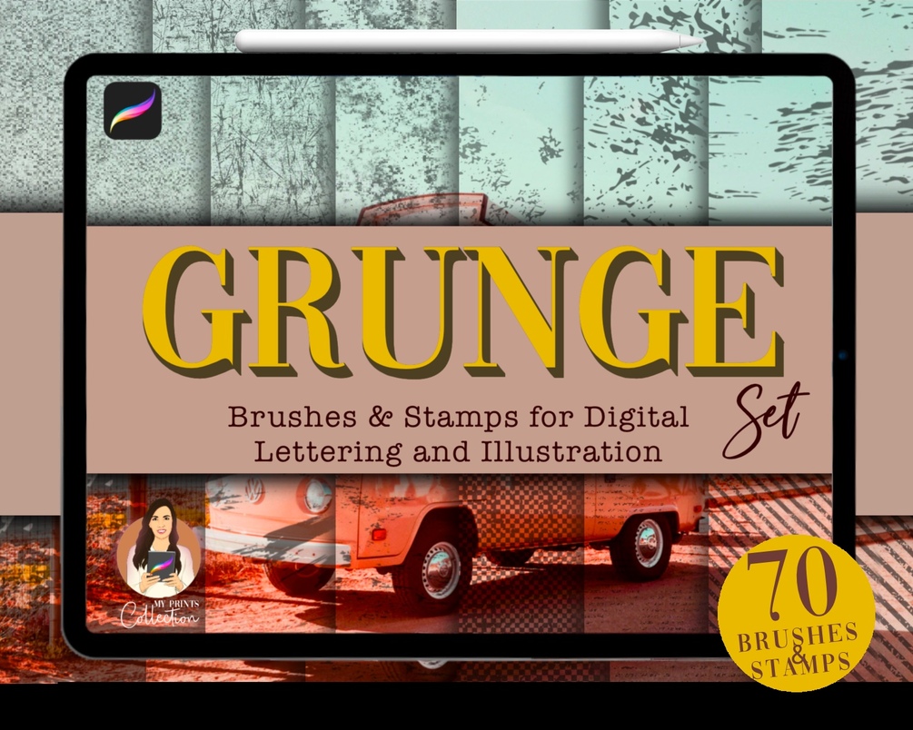Grunge Procreate Set | 70 Brushes and Stamps | Distressed Texture | Grain and Cracks Pattern | Vintage | Retro | Grungy | Digital Art