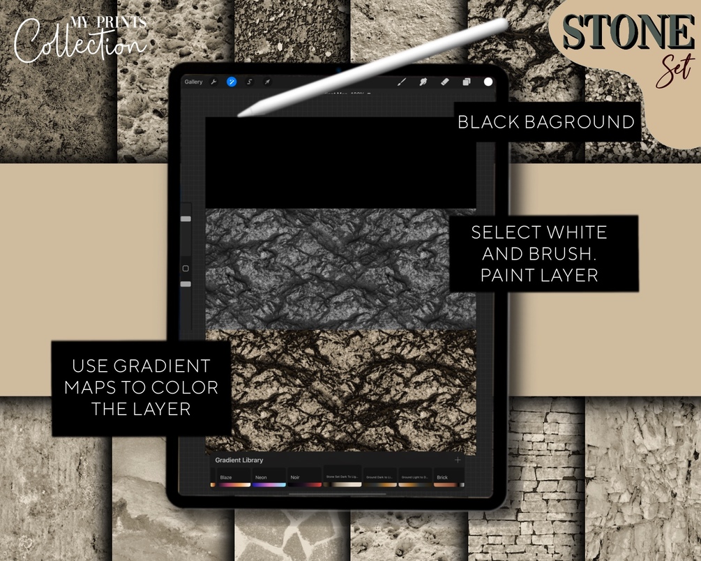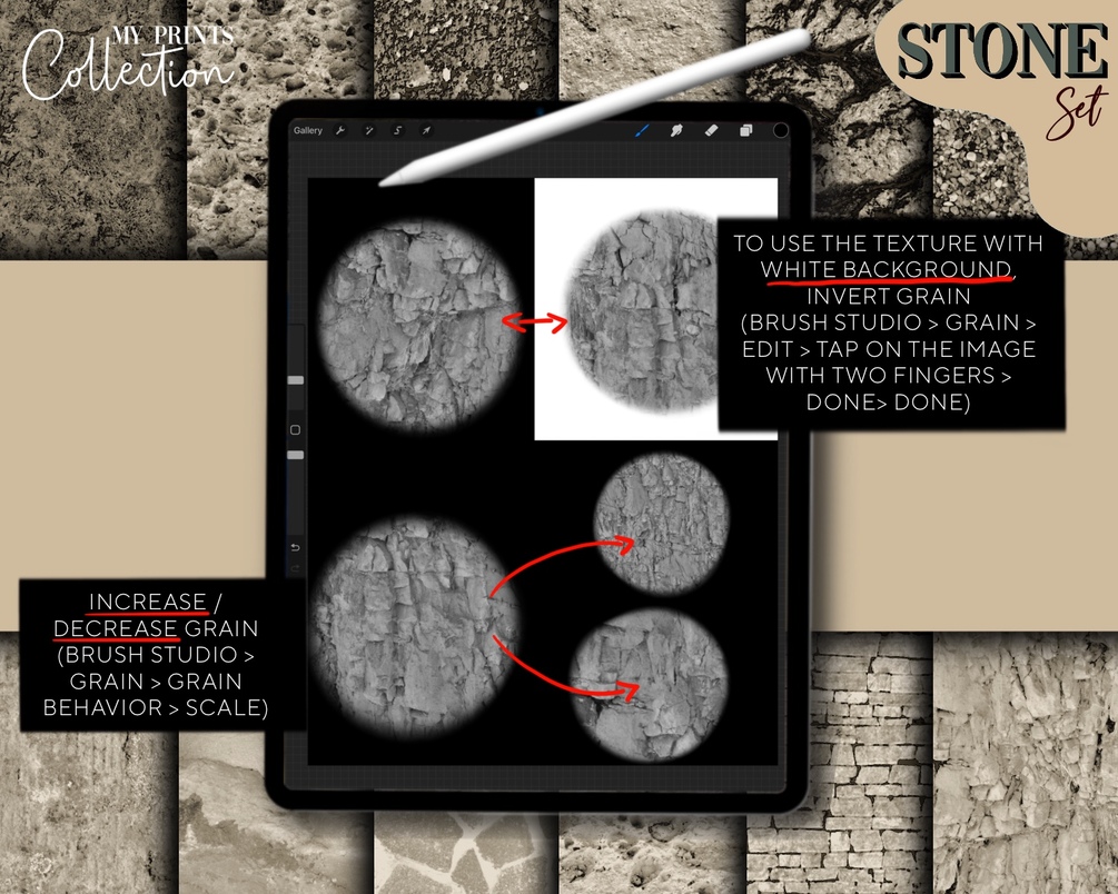 Stone Procreate Set | 78 Seamless Brushes | Pavement | Wall | Floor Pattern | Rock | Coral | Mountain | Brick | Tile | Marble | Landscape